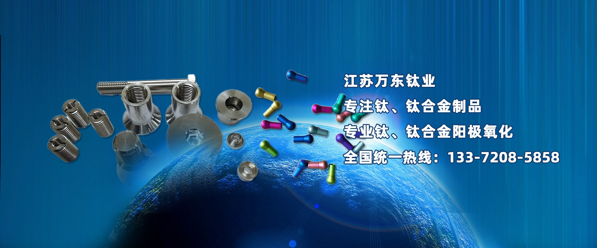 江蘇萬東鈦業(yè)科技有限公司坐落于中國江蘇省南通市,擁有28年的鈦合金研發(fā)技術(shù),公司專業(yè)從事:鈦陽極氧化、鈦合金陽極氧化、脈沖氧化。鈦合金緊固件生產(chǎn):M0.6以上高品質(zhì):螺絲、螺母、螺柱、螺套、可根據(jù)用戶的特殊要求定制。
